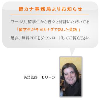 これからワーホリ、留学する人には役立つアメリカ、カナダでのトラブル話やホームステイの良い所、悪い所、外国人と付き合うってのはどんな感じなのか?など日本にいたら経験できない「カナダ生活コラム」も満載です。